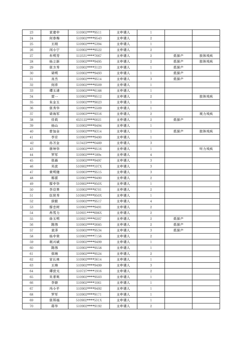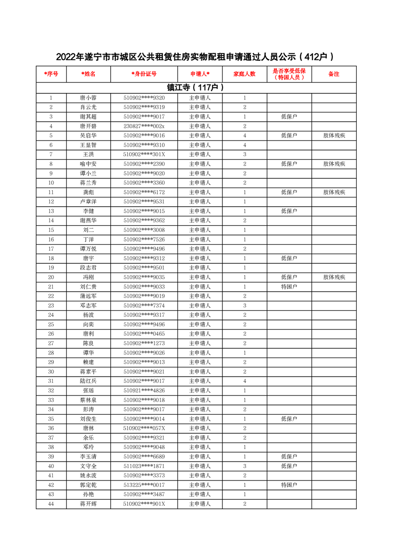 2022年遂宁市市城区公共租赁住房实物配租申请通过人员公示( 412户)
