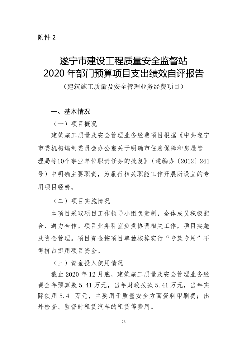 遂宁市建设工程质量安全监督站2020年部门决算编制说明