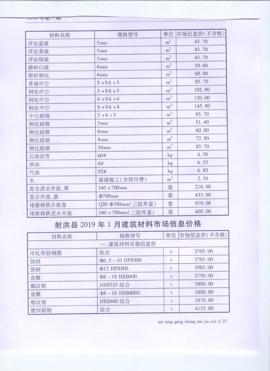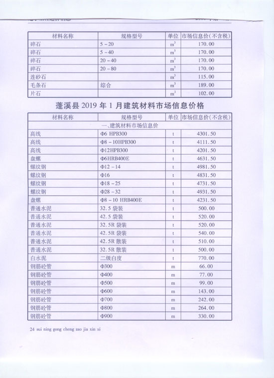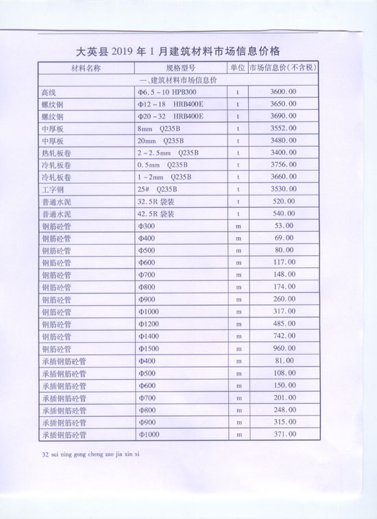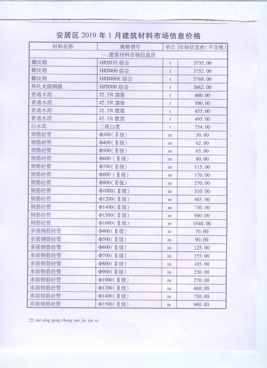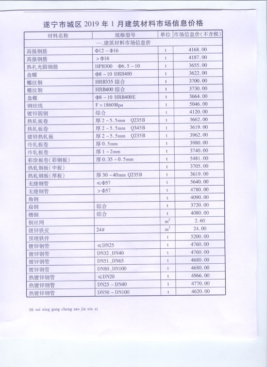 2019年1月建材价格