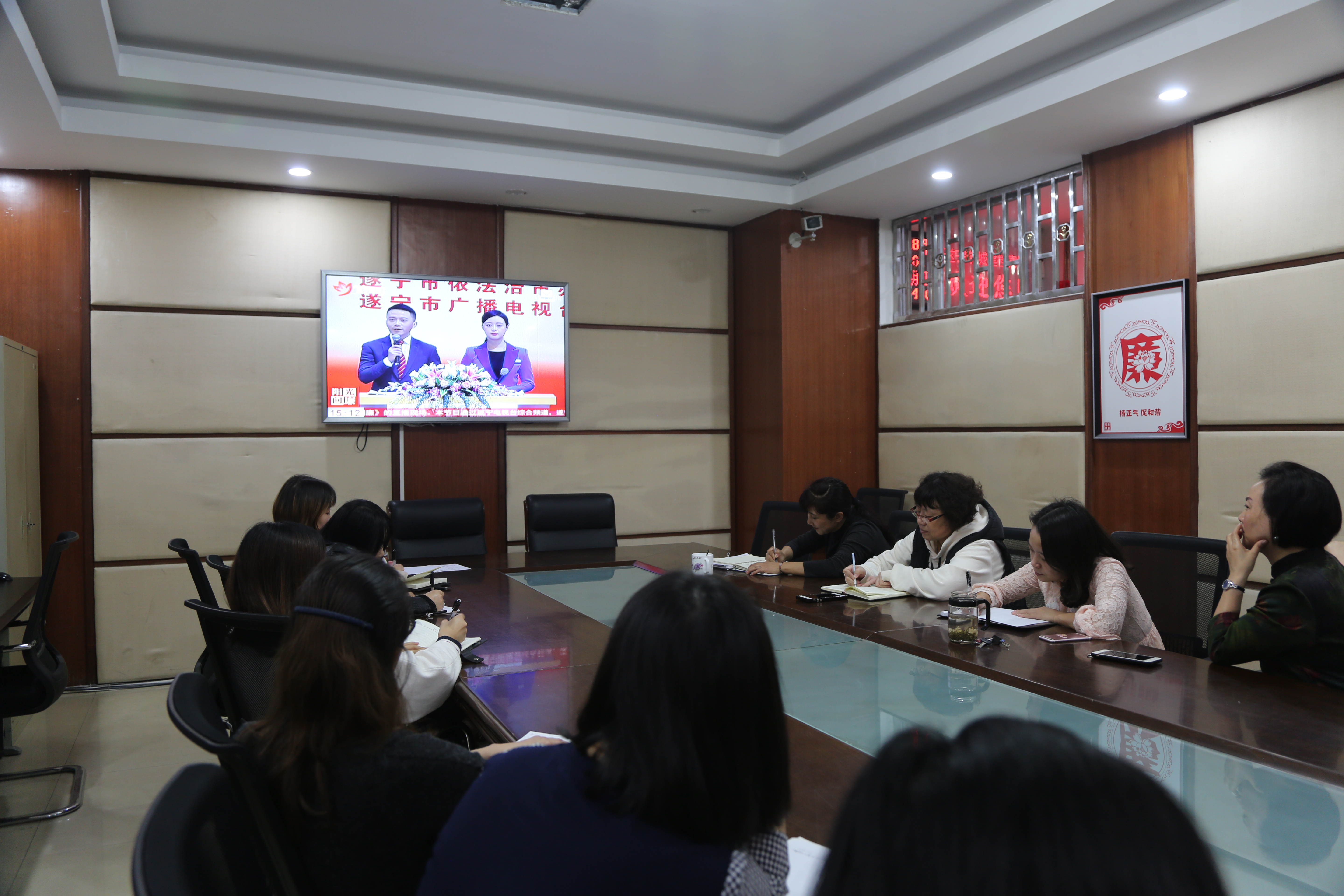 11月1日 15:00,我馆组织全馆干部职工收看了遂宁市2018年第三期“阳光问廉”直播节目。节目以“以人民为中心,压实责任重担当”为主题,针对暗访发现的突出问题,直击要害,现场质询,专家一针见血的点评,使我馆每位观看节目的干部职工深受教育和启发。