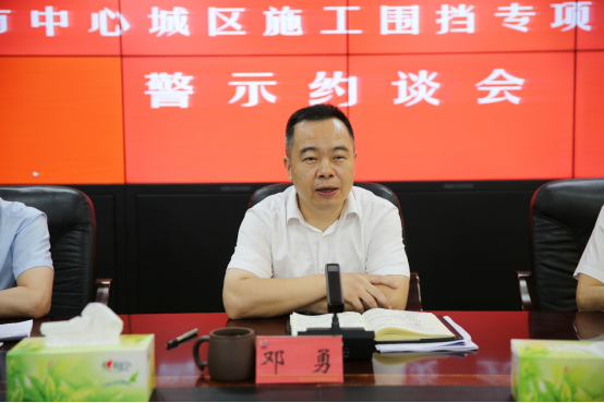 2022年7月8日,市住房城乡建设局组织召开市中心城区施工围挡专项整治警示约谈会,市城管执法局、市经济和信息化局联合开展约谈。会议由市住房城乡建设总经济师向京主持,市住房城乡建设局党组书记、局长邓勇参加会议并讲话。