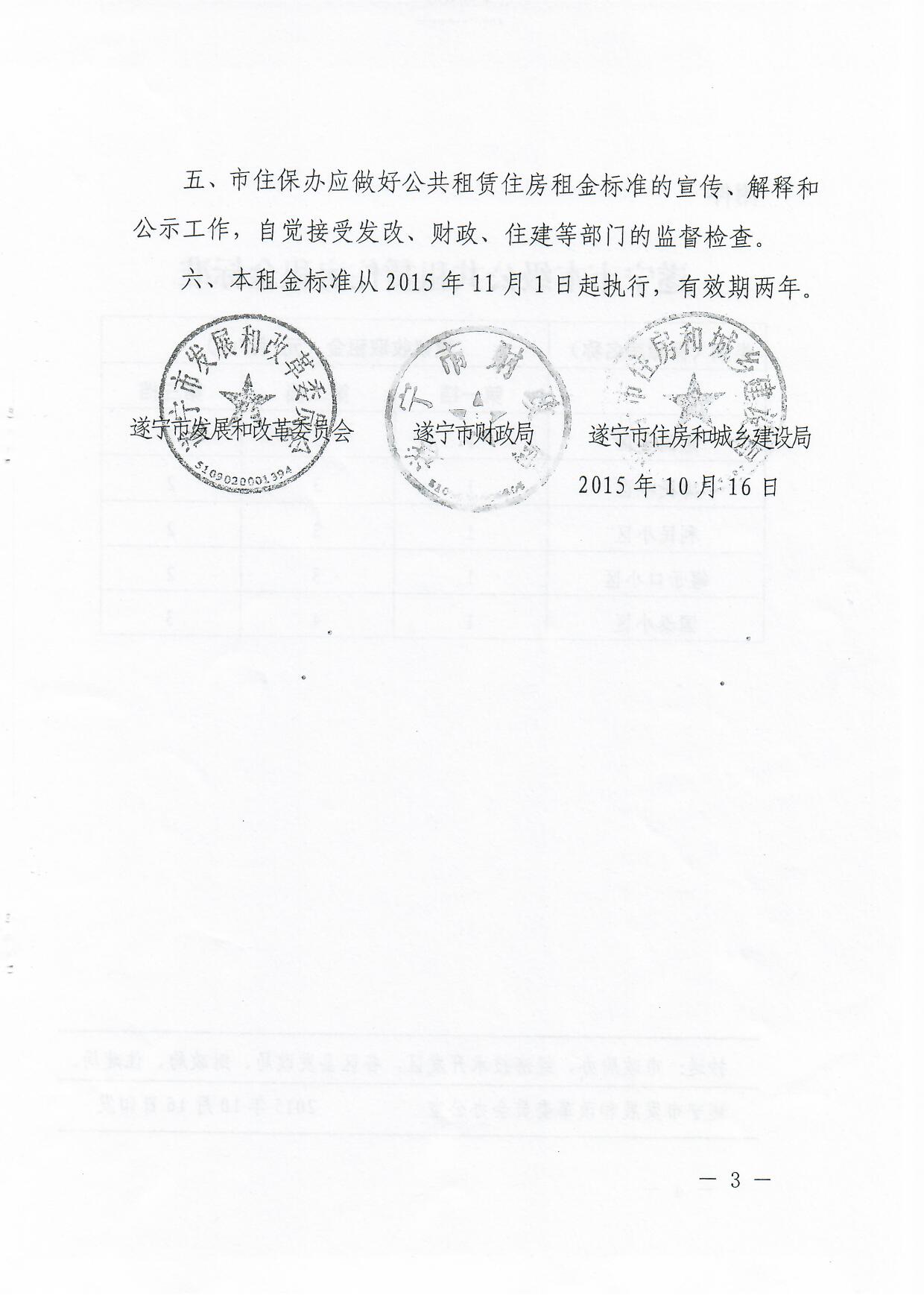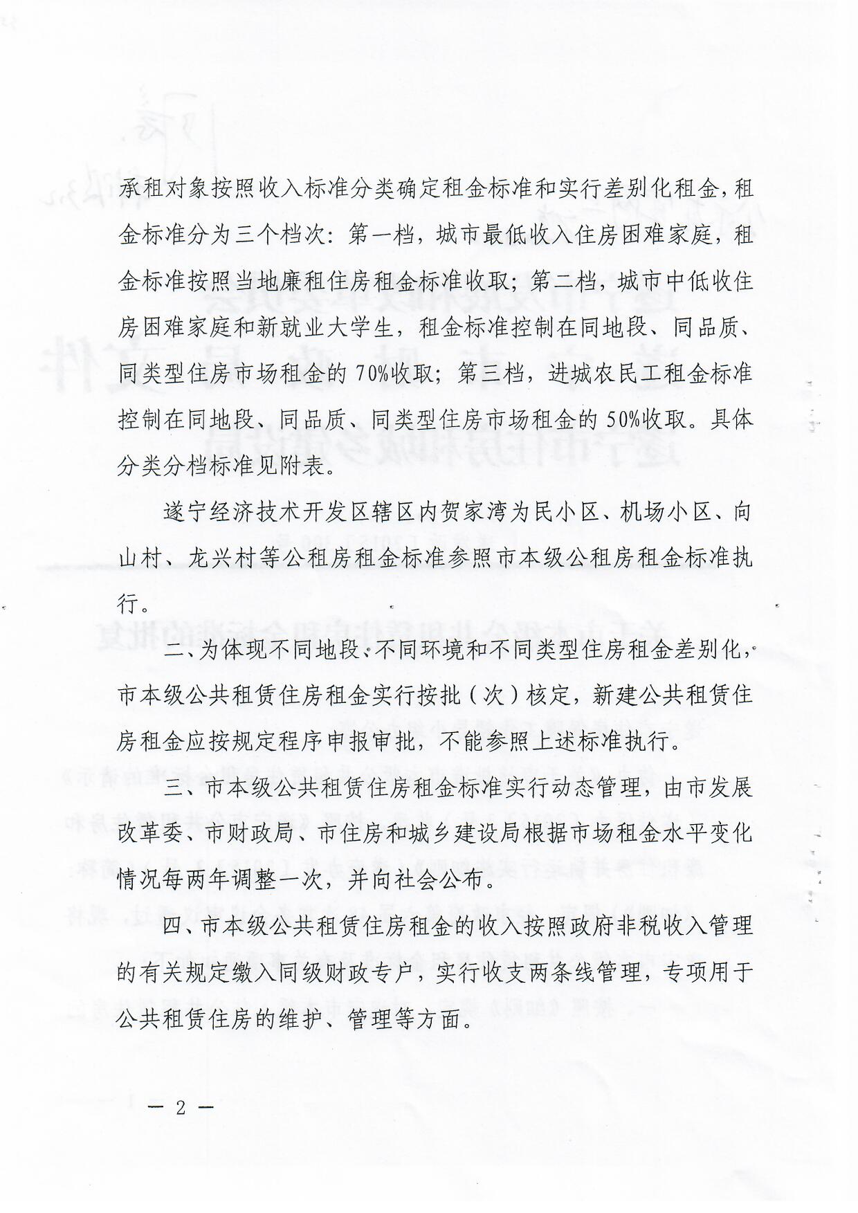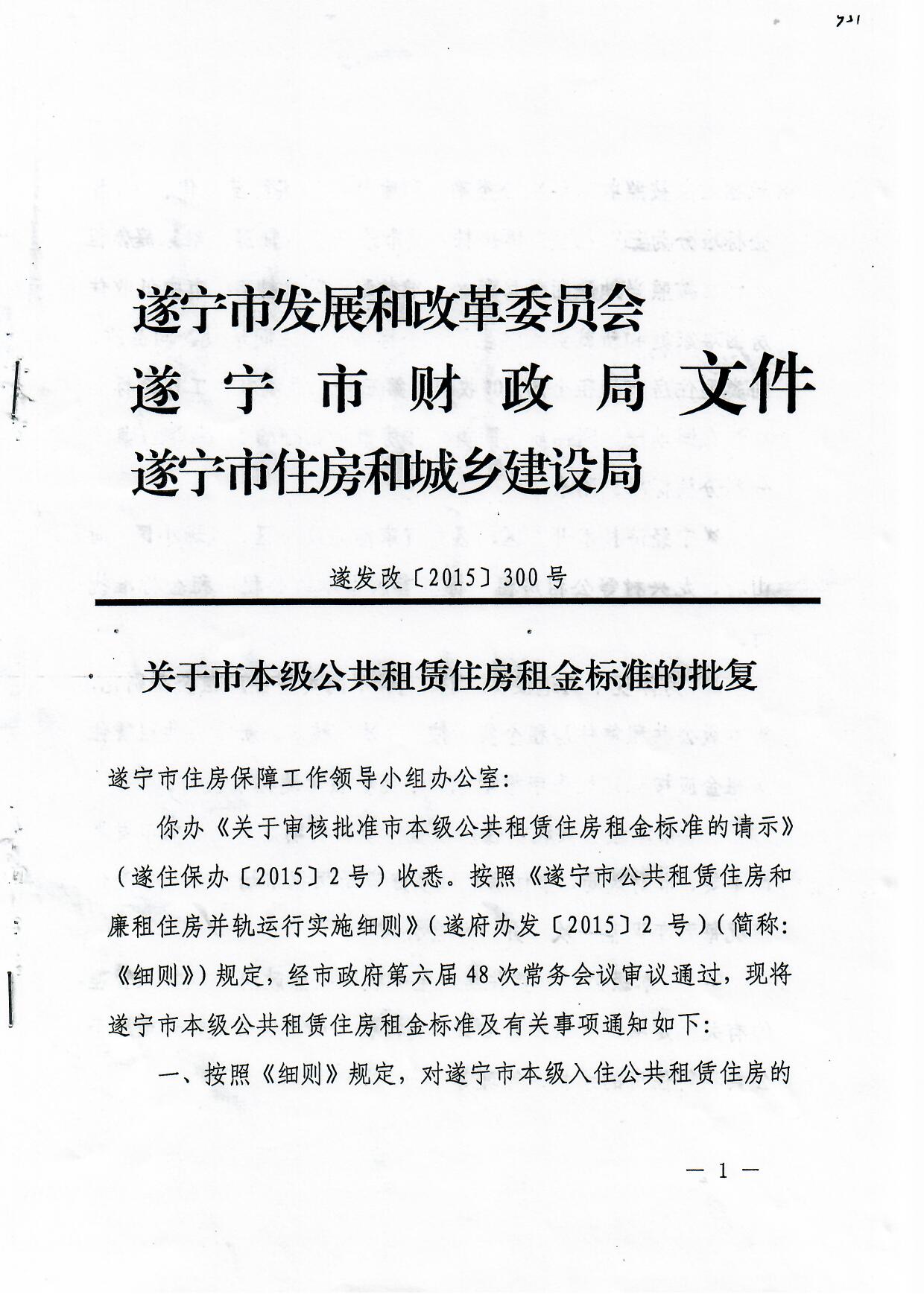 关于市本级公共租赁住房租金标准的批复 遂发改【2015】300号