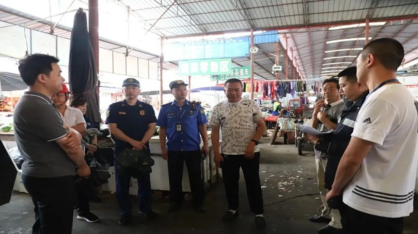 7月27日,射洪市综合行政执法局联合市场监管局、经合局、住建局、市消防救援大队、太和街道办事处、国网射洪市供电公司对城南市场进行了安全隐患的复查。