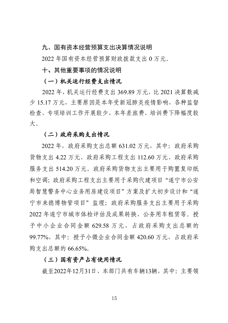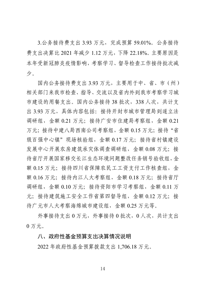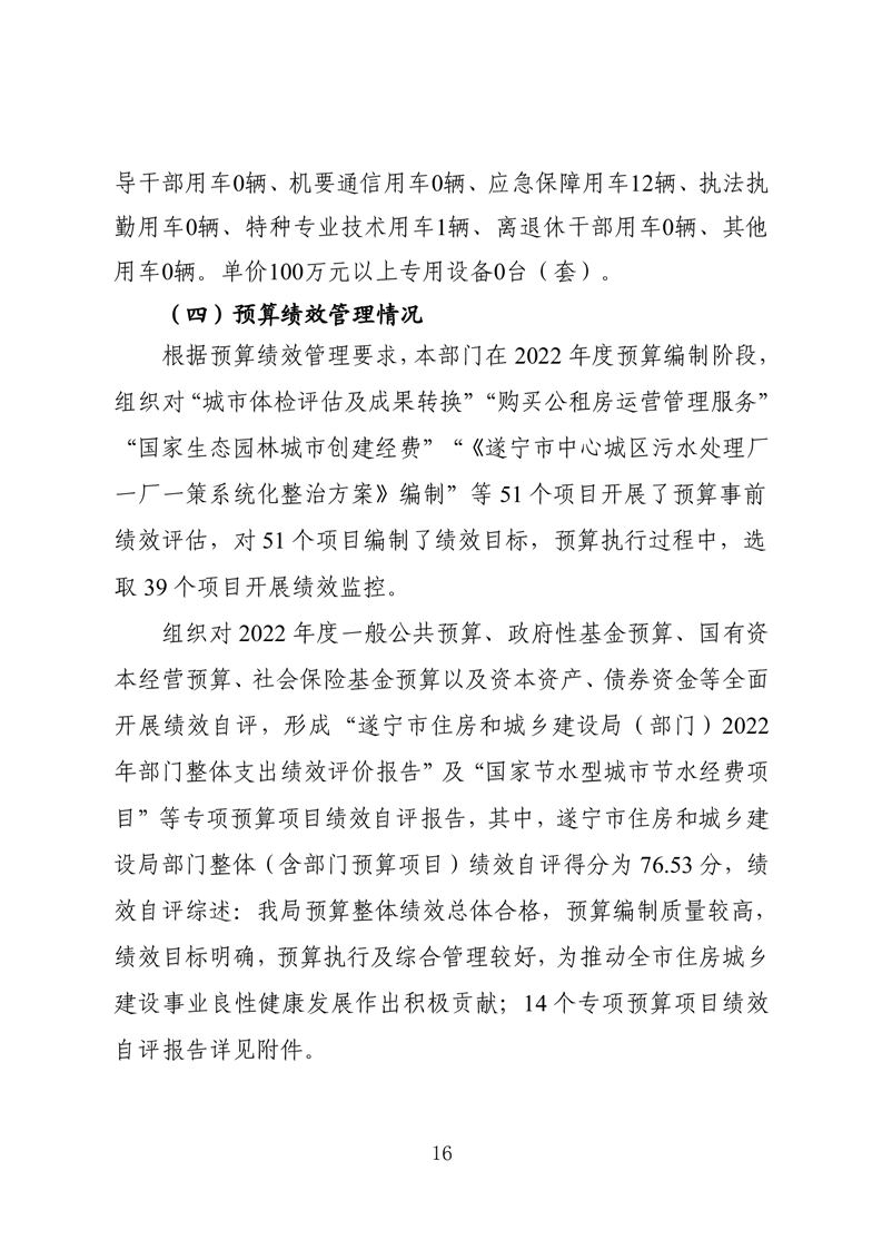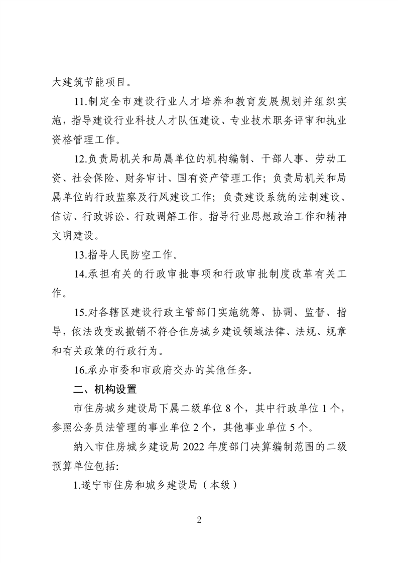 遂宁市住房和城乡建设局2022年部门决算编制说明