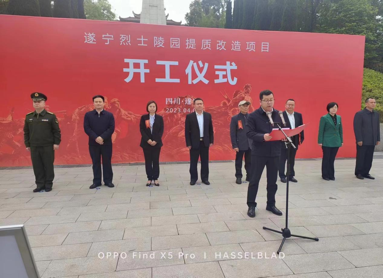 2023年4月6日,遂宁烈士陵园提质改造项目在该园内举行了项目开工仪式,市退役军人事务局唐思伦局长宣布了项目开工令。
