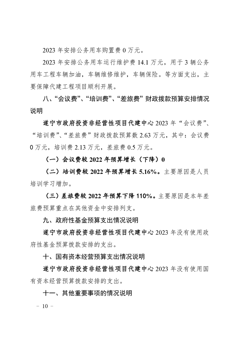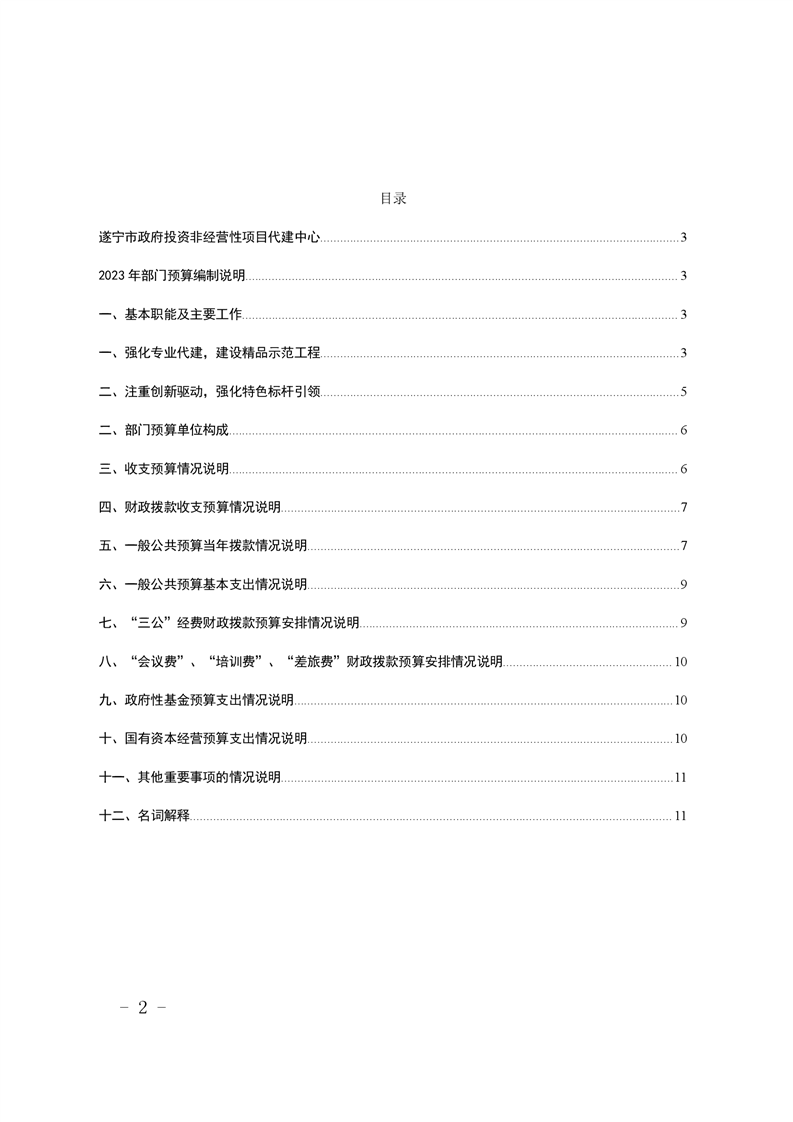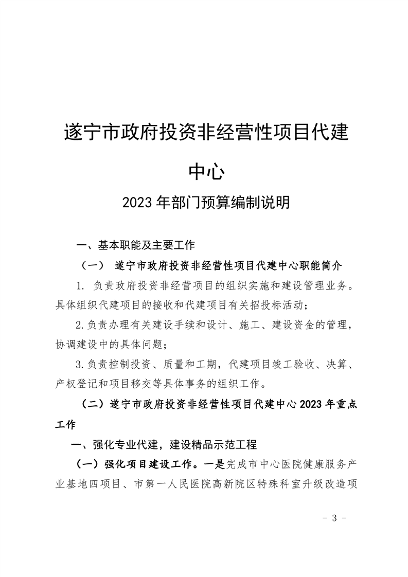 遂宁市政府投资非经营性项目代建中心2023年部门预算