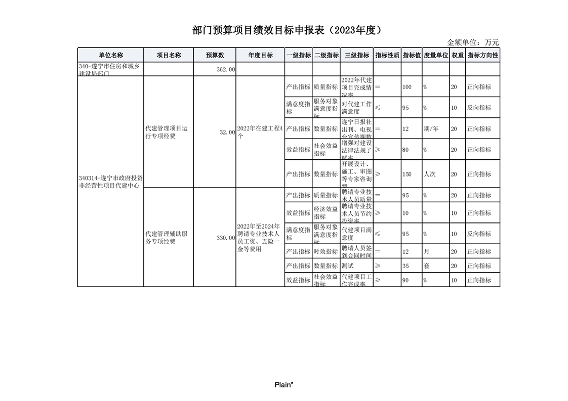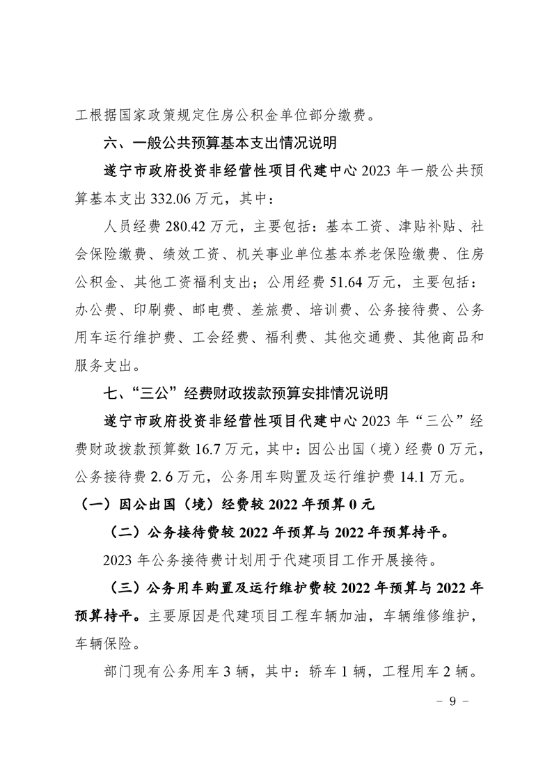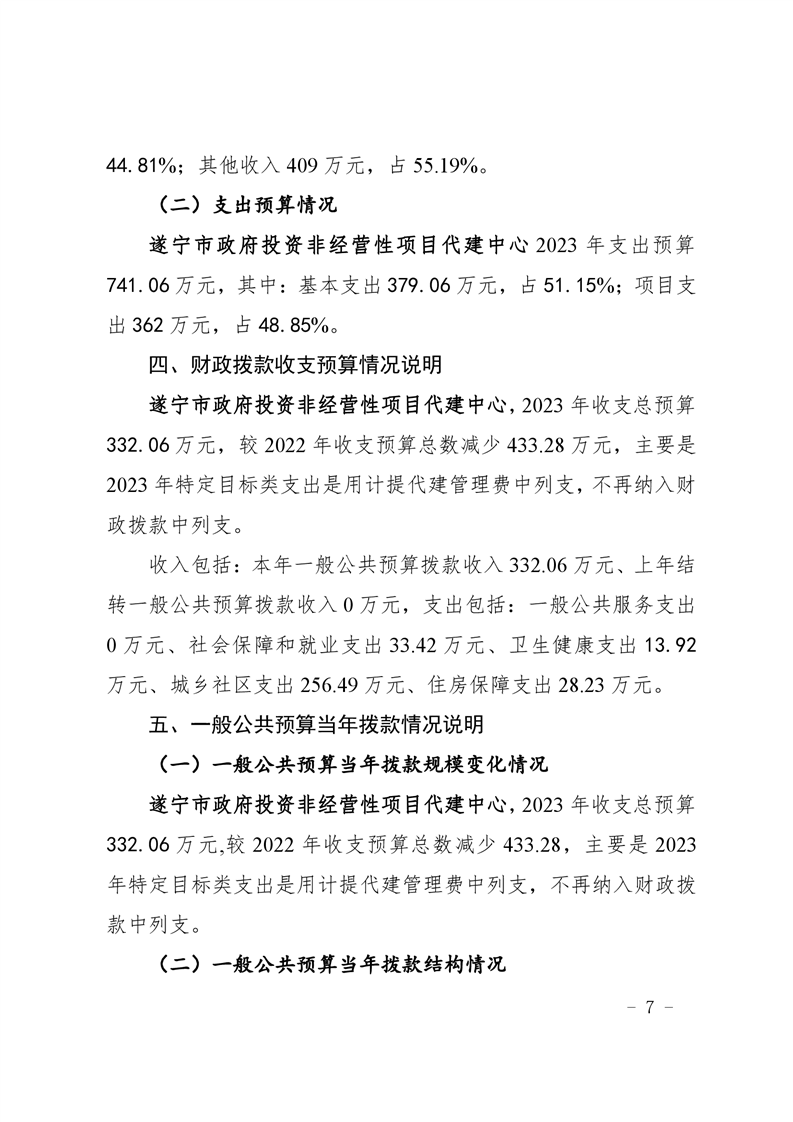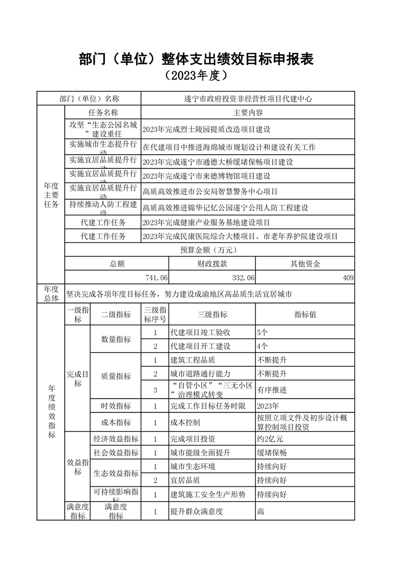 遂宁市政府投资非经营性项目代建中心2023年部门预算