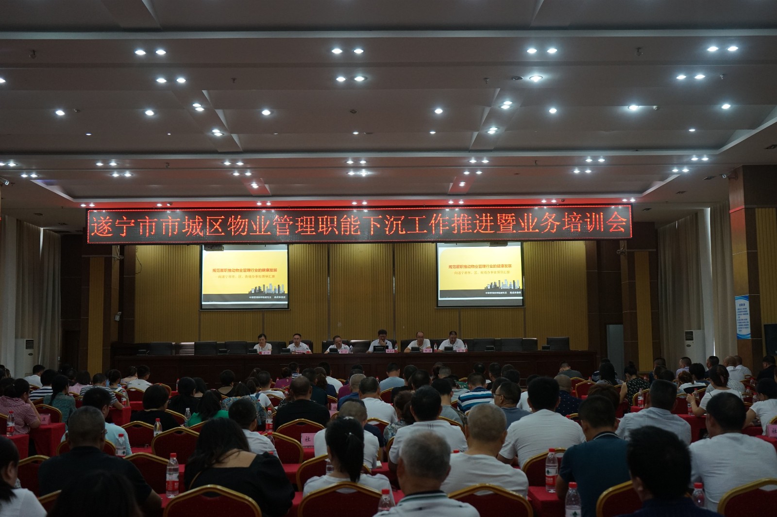 9日下午,遂宁市市城区物业管理职能下沉工作推进暨业务培训会召开,会议就进一步加强物业小区的综合管理和服务,进行了工作安排和业务培训。市住房城乡建设局(市房管局)、船山区相关负责人,船山区、市直园区各街道办事处、社区等共计300余人参会。