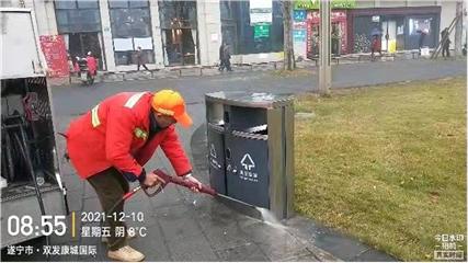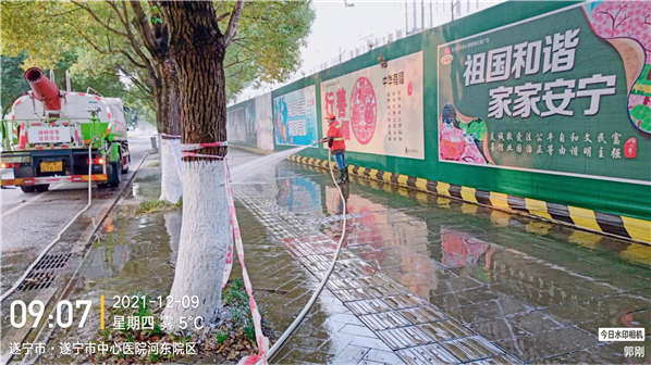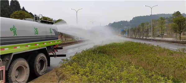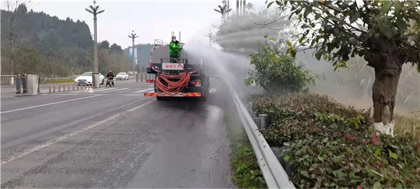 (2)提高机械冲洗频率。出动扫地车、冲洗车、洒水车等机械化设备13台,每天轮流对城区主次干道、人行道、环卫设施等进行清扫保洁,累计出动300余车次进行冲洗降尘,有力减少大气环境污染。