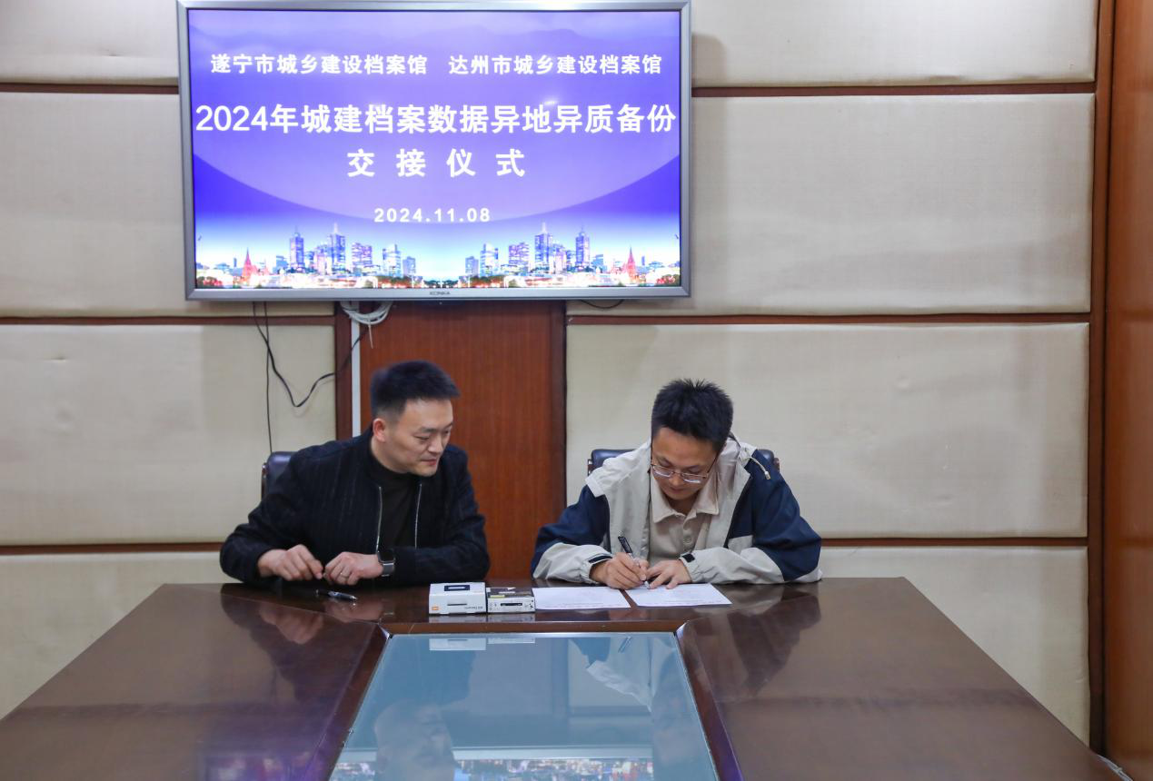 近日,达州市城乡建设档案黎国栋同志来我馆开展城建档案数据异地备份及业务交流工作。本次达州市城建档案馆共移交数据硬盘2块,移交电子档案数据3.59TB,我馆立即执行备份数据入库封存操作,确保备份数据的安全性和完整性。