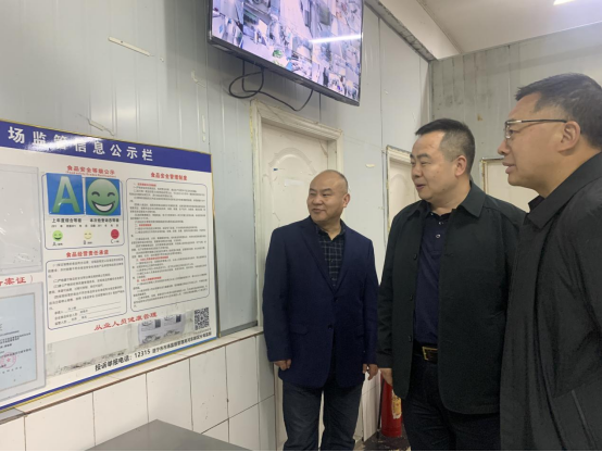 邓勇一行来到遂宁应用高级技工学校,查看了食品安全相关制度,查阅了食品安全相关资料,深入学校食堂、操作间、储藏间、消毒间等详细了解食材采购、运输、储存、加工、留样、就餐等各环节流程,听取了学校食品安全工作汇报。