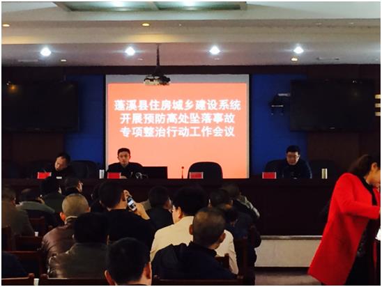 2017年3月16日,蓬溪县住建局结合当前住房城乡建设系统安全生产工作实际,组织全县建筑企业负责人和安全副经理、村建所负责人、县域内在建工程项目经理和总监等百余人召开了全县建设系统开展预防高处坠落事故专项整治行动工作会议。