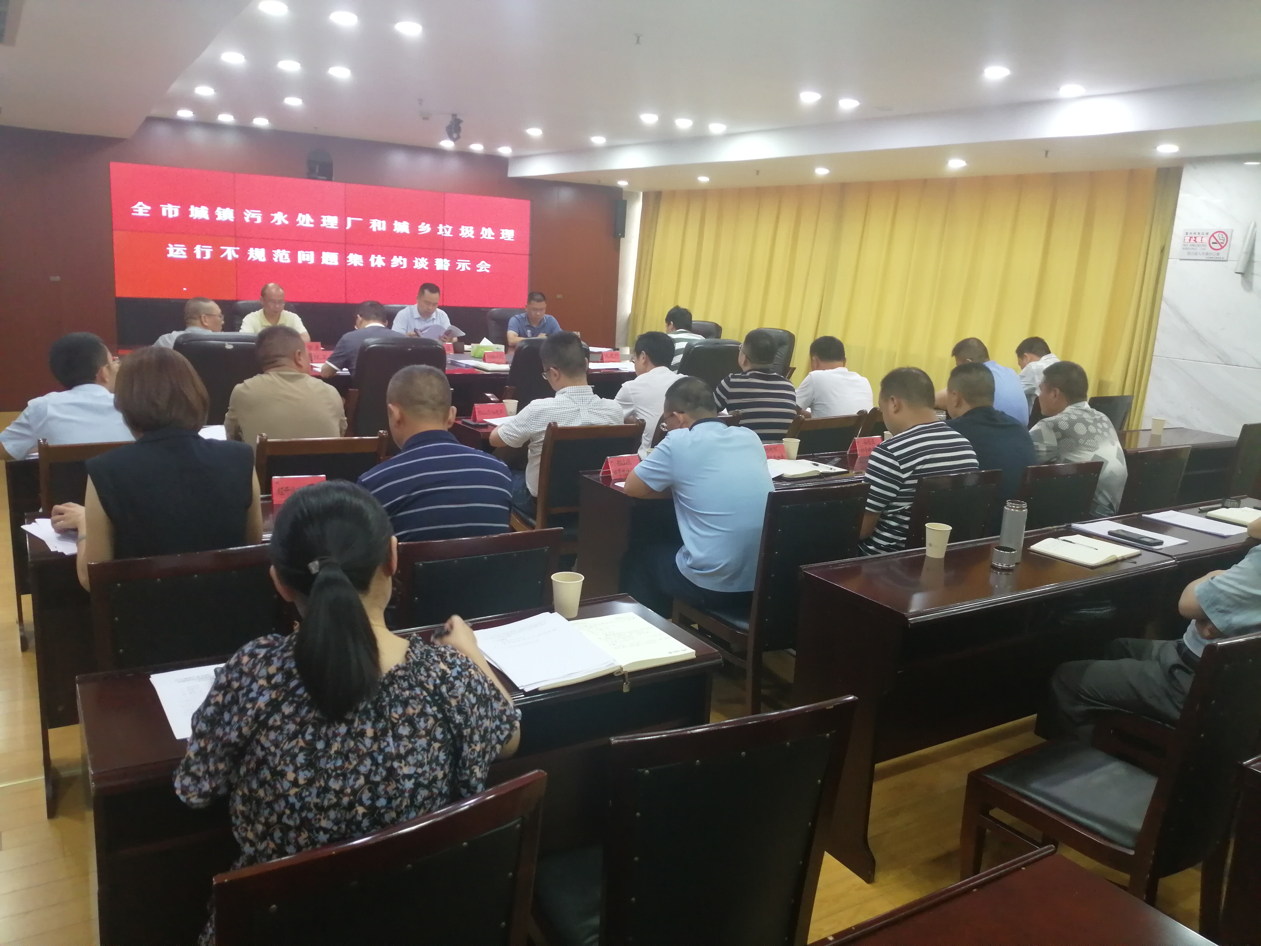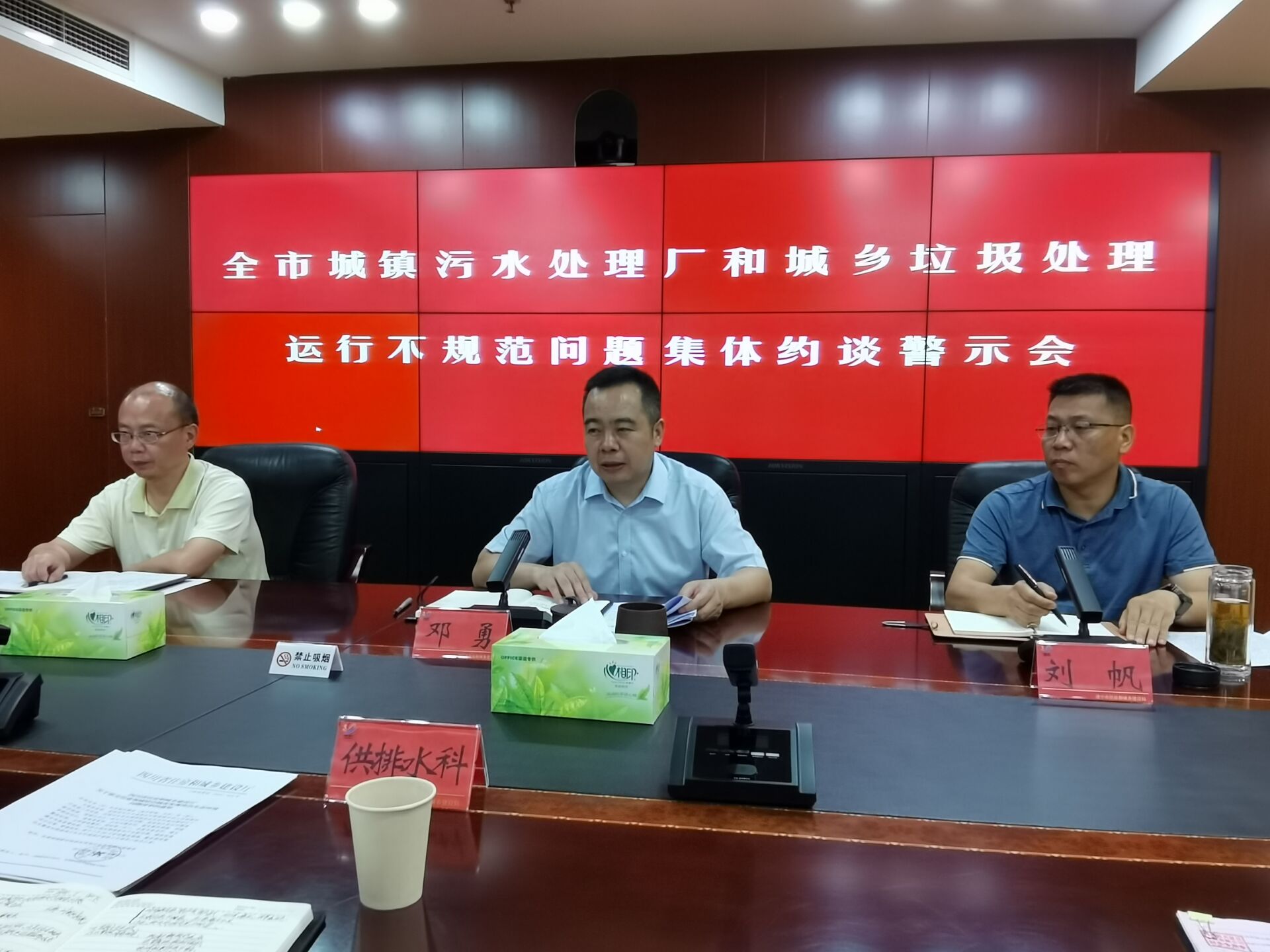 7月20日下午,市住房城乡建设局组织召开城镇污水处理厂和城乡垃圾处理运行不规范问题集体约谈警示会,会议分两个阶段进行,第一阶段集体约谈各辖区污水和垃圾行业主管部门,第二阶段集体约谈污水和垃圾运营企业。会上,市住房城乡建设局副局长刘帆通报了住房城乡建设厅约谈市住建局情况、全市城镇污水处理厂和城乡垃圾处理设施运行不规范相关问题,相关单位作表态性发言,市住房城乡建设局党组书记邓勇参加约谈警示会并作重要讲话。市纪委监委驻市住房城乡建设局纪检监察组副组长曾志勇参加会议。各县(市、区)、市直园区住房城乡建设部门、环境卫生行政主管部门主要领导及分管领导,局机关相关科室负责人,相关运营企业主要负责人和分管负责人参加约谈。