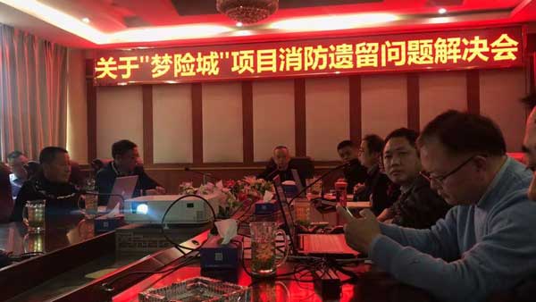 2019年10月31日,射洪县住房和城乡建设局在四川省射洪虹桥房地产集团有限公司四楼会议室组织召开了射洪梦险城消防遗留问题整改方案协调会,射洪县应急管理局、射洪县消防救援大队、成都碧城建筑设计有限公司、四川梵赛思消防科技有限公司、射洪虹桥欢乐设备管理有限公司等单位人员和有关消防专家参加了会议。
