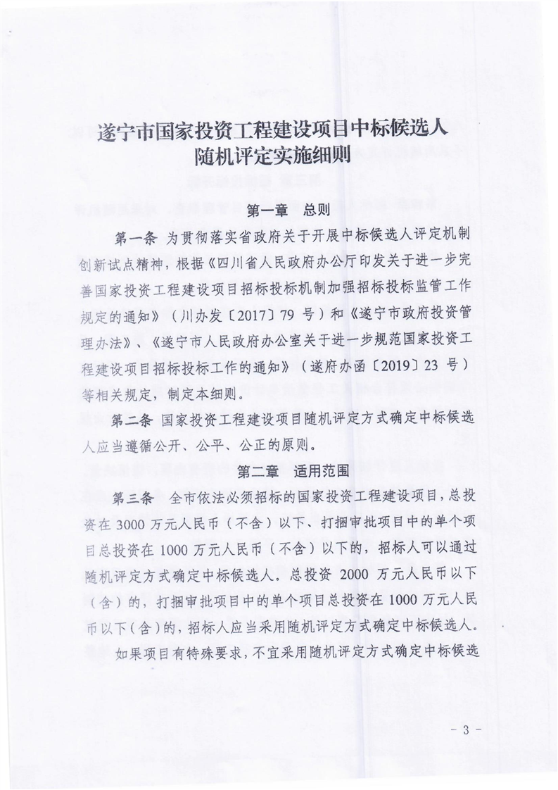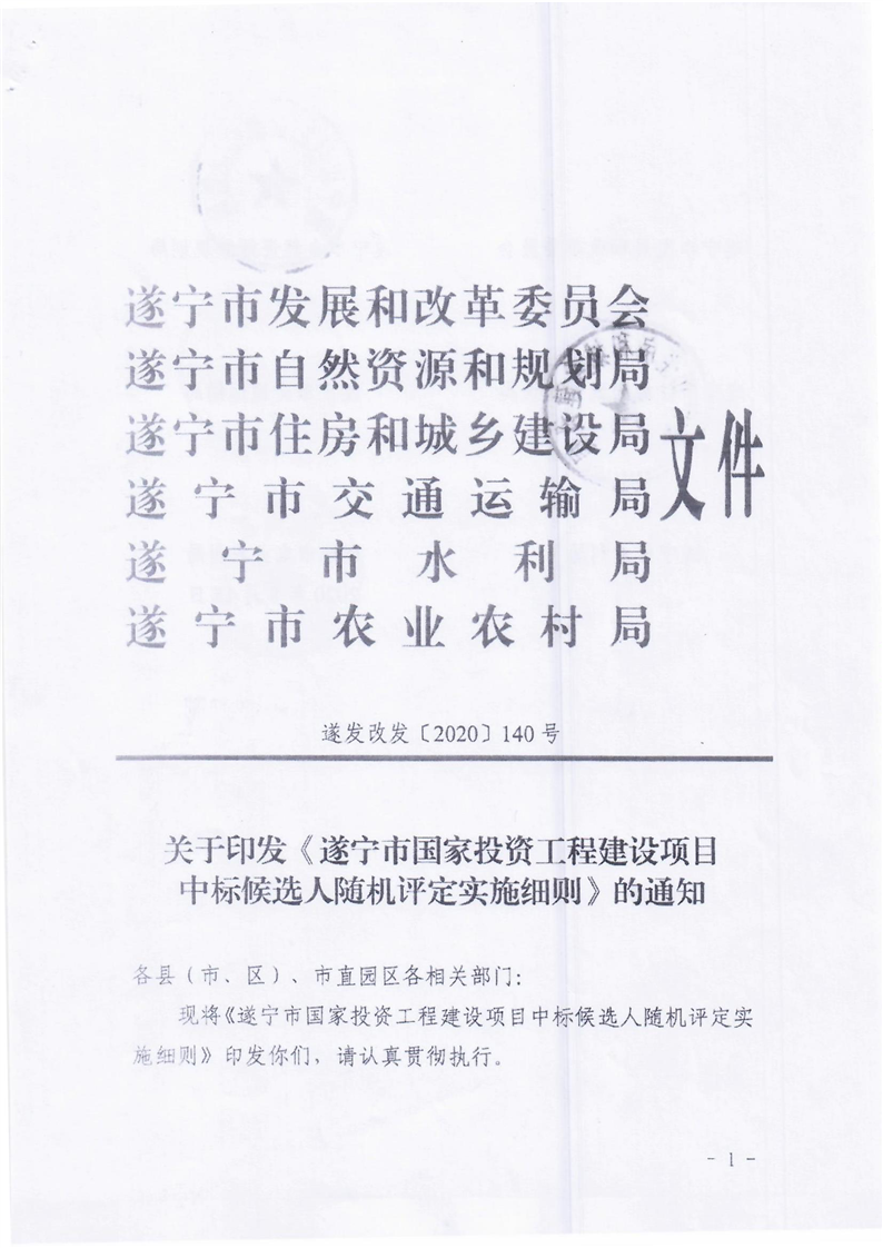 关于印发《遂宁市国家投资工程建设项目中标候选人随机评定实施细则》的通知