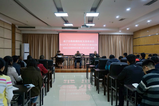 按照纪检组10月25日上午会议要求,测绘院支部组织全院党员干部职工于10月25日下午及时传达学习了《中共遂宁市纪委驻市住建局纪检组综合监督单位纪检工作会议》精神。