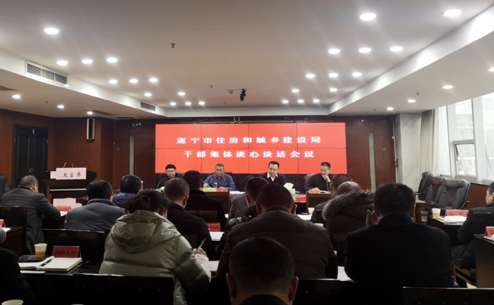 2020年1月8日,市住房城乡建设局召开干部集体谈心谈话会议,局党组书记邓勇主持会议,局长邓云、驻局纪检监察组组长王海军、局机关党委书记张庆出席会议并讲话,机构改革后提拔、交流调整和免职的科级干部,以及未作调整的机关科室负责人、局属单位负责人参加会议。