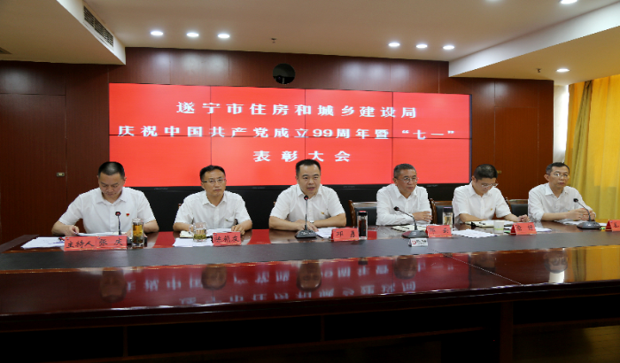 大会在响亮的国歌声中开始,60余名参会人员面对党旗,重温入党誓词,深刻回顾党员的政治责任、基本要求,进一步坚定初心,坚决践行使命担当。会议宣读了《关于表彰先进党组织、优秀共产党员和优秀党务工作者的决定》《关于表扬市直机关“五好党支部”的通报》《关于住建系统“我为党旗添光彩”主题演讲比赛情况的通报》,局领导为先进党组织、优秀共产党员、优秀党务工作者和主题演讲比赛获奖选手颁发了奖牌和荣誉证书,部分优秀共产党员代表作了发言。遂宁市住房城乡建设局领导班子成员,机关各科室、局属各支部,各县(市、区)、市直园区住建部门负责人参加会议。