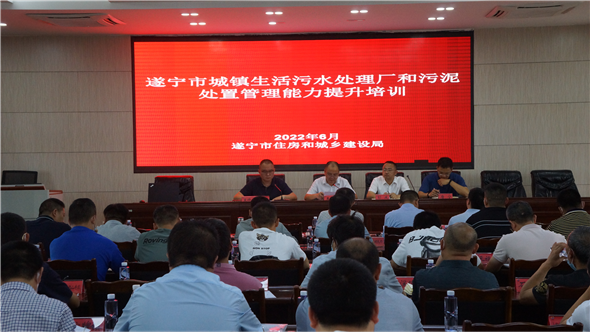 6月15日,市住房城乡建设局组织召开全市城镇生活污水处理厂和污泥处置管理能力提升培训会。四川环保眉山水务常务副总经理高级工程师彭庆、四川凯乐检测技术有限公司经理唐宁受邀作专题培训。市住房城乡建设局党组成员、机关党委书记李建作开班致辞,在家局领导,相关科室、局属单位负责同志,各县(市、区)、市直园区排水主管部门分管及业务股室负责同志,遂宁川能水务片区负责人,政府自主运营(含BOT、PPP)建制镇生活污水处理厂运营负责人,污泥处置厂运营单位负责人,城市(县城)污水处理厂运营单位负责人参加本次培训。